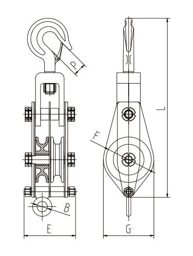 4、综合特点,河北乐鱼平台索具开发的电力起重滑车,结构先进,外型美观,应用广泛,体积小,重量轻,抗疲劳度高,请客户放心选择用。